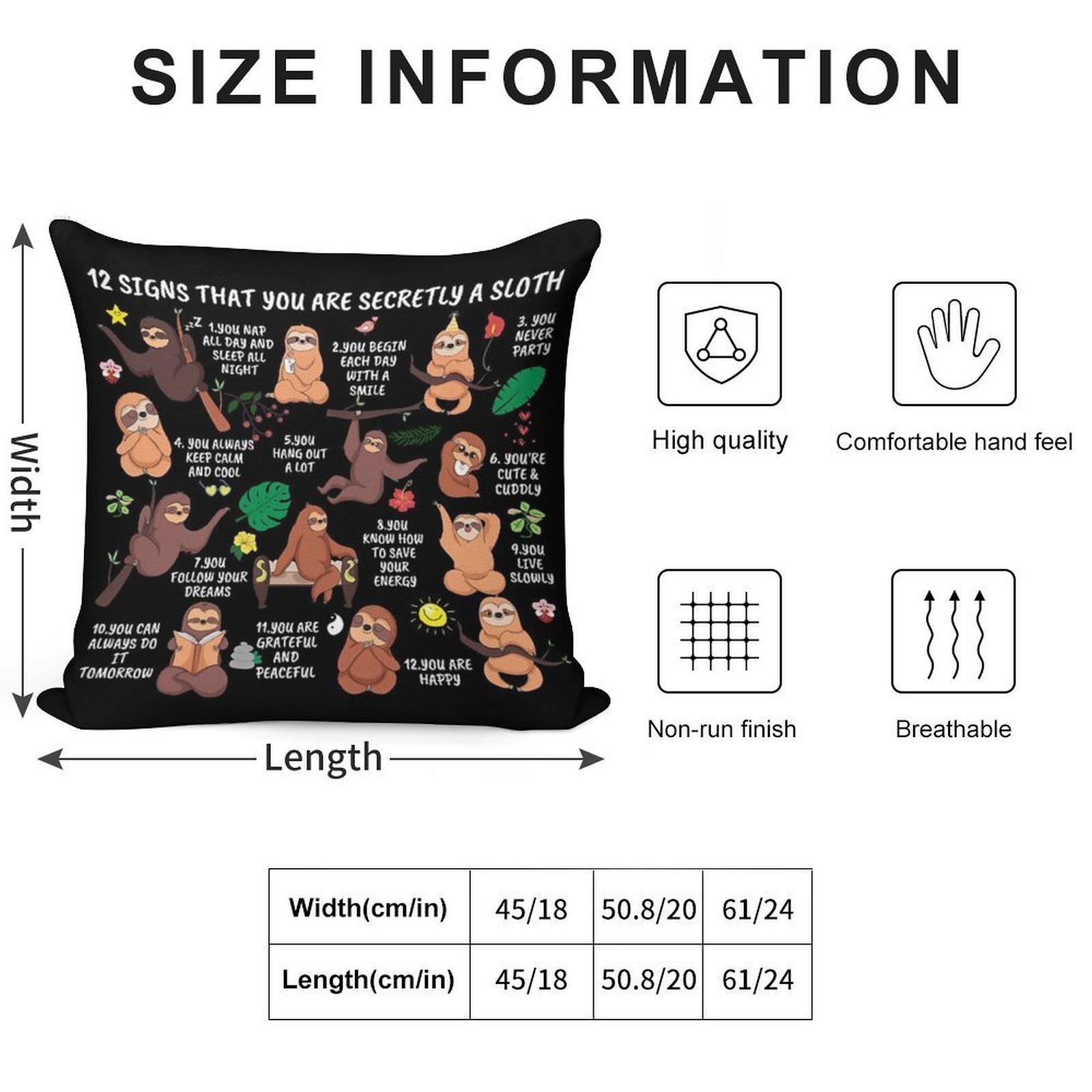 - Reinforced stitching along the edges prevents fraying and extends the life of your 12 Signs That You Are Secretly A Sloth Gifts for Sloth Lovers Pillowcase.